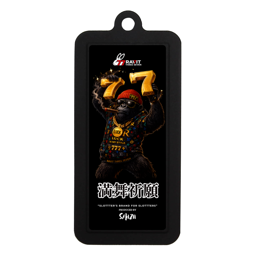 勝負運を呼び込む “満舞(まんまい)祈願” デザインとして、RAVIT THREE SEVEN の大人気キャラクター ゴージャスゴリラ がラバーキーホルダーになって登場!